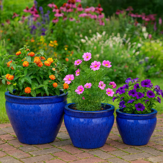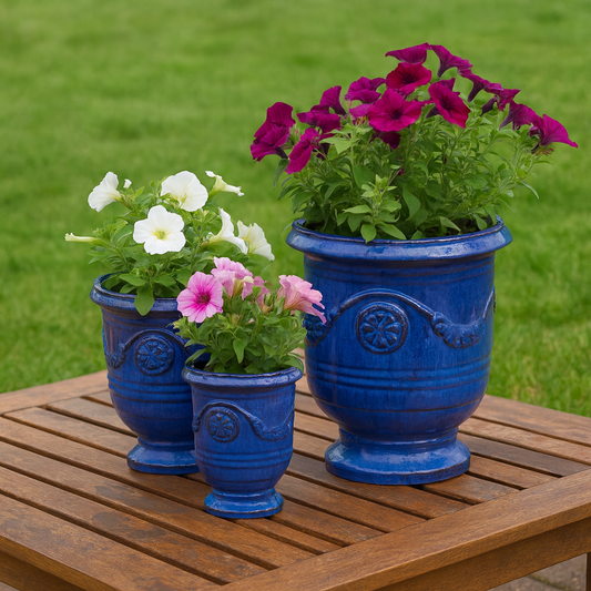 Blumentopf / Pflanzgefäß „3er Set Anduze“ – Glasierte Steinguttöpfe Blau, frostfest & handgefertigt