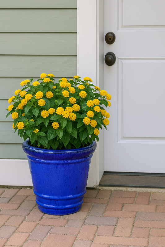 Blumentopf / Pflanzgefäß „Bamboo Hoch“ – Glasierter Steinguttopf Blau 38x30 cm, frostfest & handgefertigt