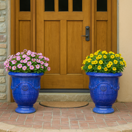 Blumentopf / Pflanzgefäß „Anduze“ – Glasierter Steinguttopf Blau 35x42 cm, frostfest & handgefertigt