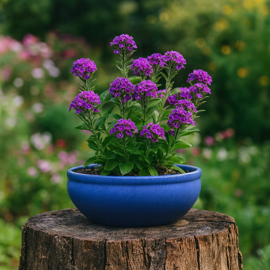Blumentopf / Pflanzgefäß „Schale“ – Glasierter Steinguttopf Blau 20x11 cm, frostfest & handgefertigt