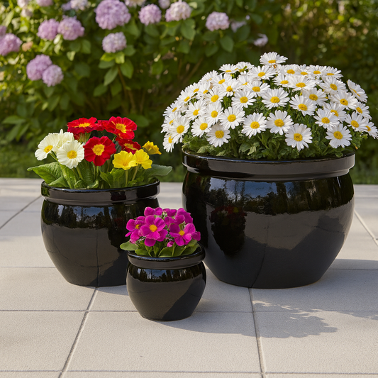 Blumentopf, Pflanzgefäß Eiertopf schwarz 36x32cm