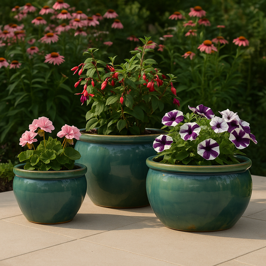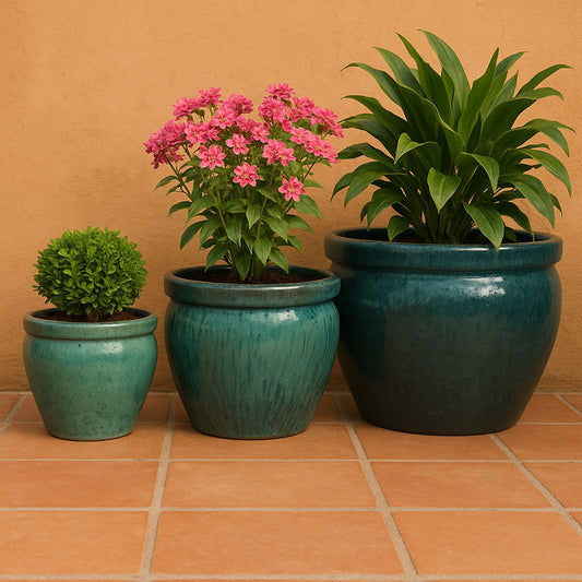 Blumentopf, Pflanzgefäß 3er Set Anduze grün/blau