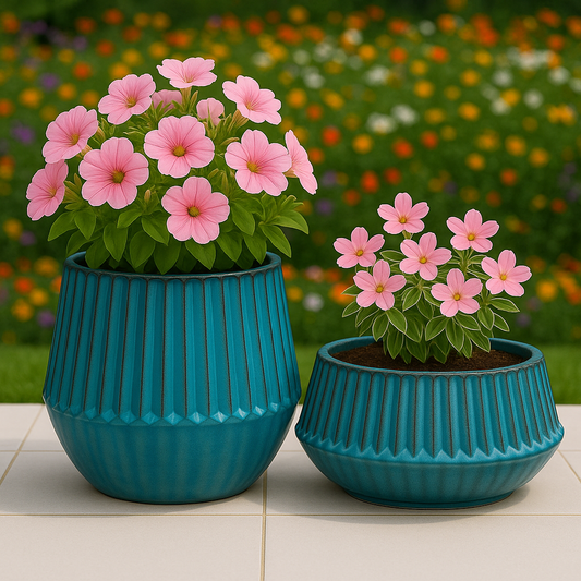 Blumentopf, Pflanzgefäß 2er Set Base +Base Schale grün/blau