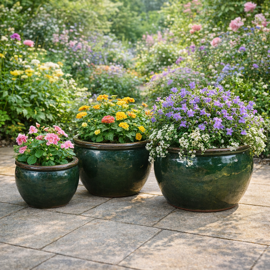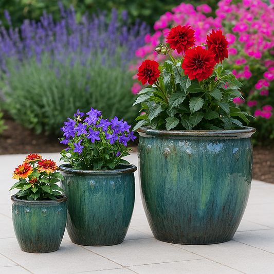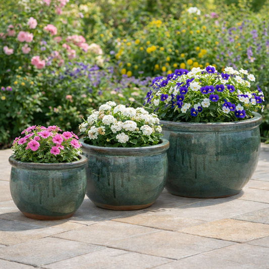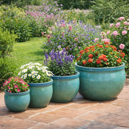 Unsere glasierten Pflanzkübel in Grüntönen verbinden hochwertige Keramik mit zeitlosem Design. Die frostfesten Gefäße aus robustem Steingut eignen sich ideal für Balkon, Terrasse und Garten. Von kräftigem Grün bis zu bläulicheren Farbverläufen bietet diese Kategorie eine große Auswahl an Farbabstufungen. Dank der langlebigen Glasur sind die Pflanzkübel wetterbeständig, pflegeleicht und ganzjährig im Außenbereich einsetzbar.